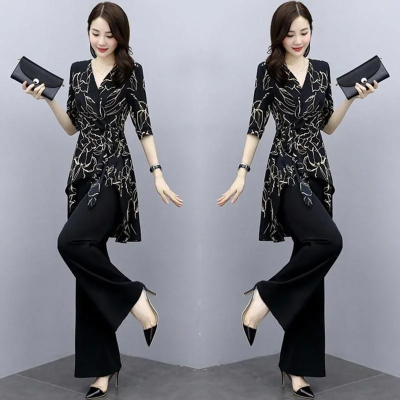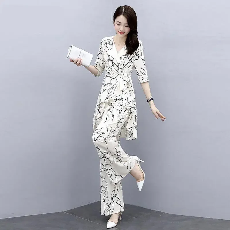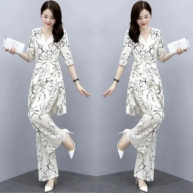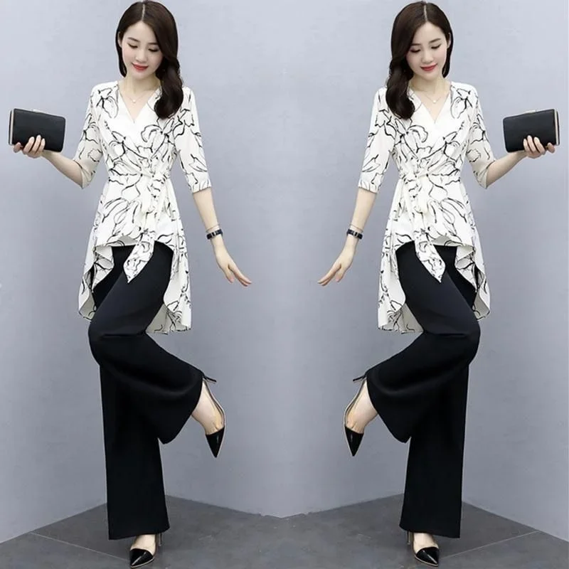 كن أول من يقيم “المرأة قطعتين مجموعات جديد الربيع الصيف الشيفون طباعة أعلى عالية الخصر بنطال ذو قصة أرجل واسعة بدلة على الموضة غير رسمية الإناث حجم كبير الملابس”