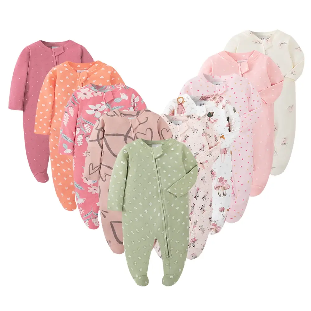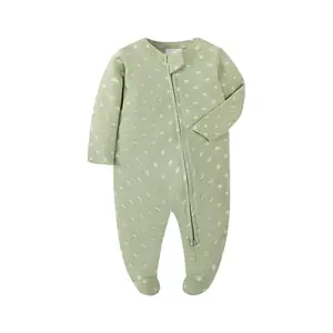 بيجامة أقدام حديثي الولادة بسحاب للفتيات والأولاد بذلة بأكمام طويلة من القطن الأبيض الصلب موضة ملابس الأطفال من عمر 0 إلى 12 شهرًا