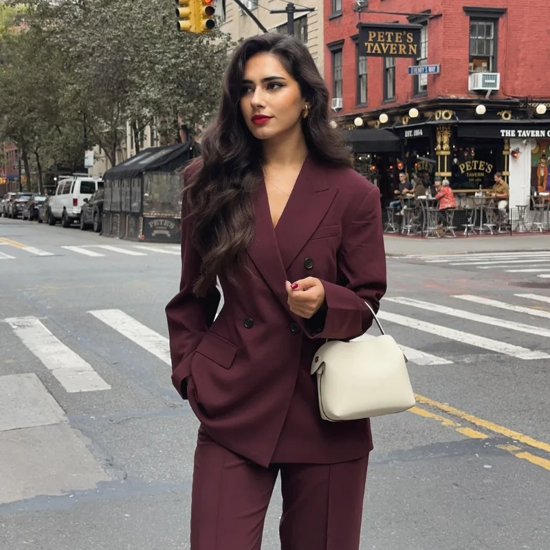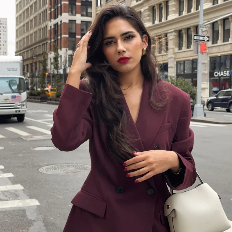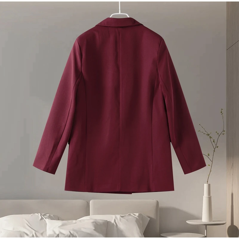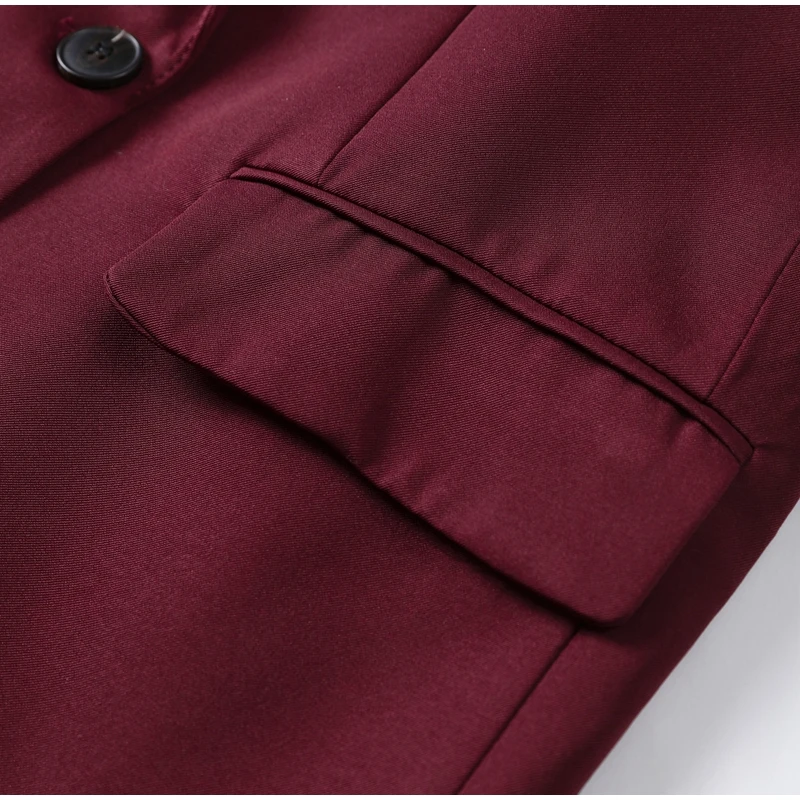 | اللون | Wine red suit jacket |