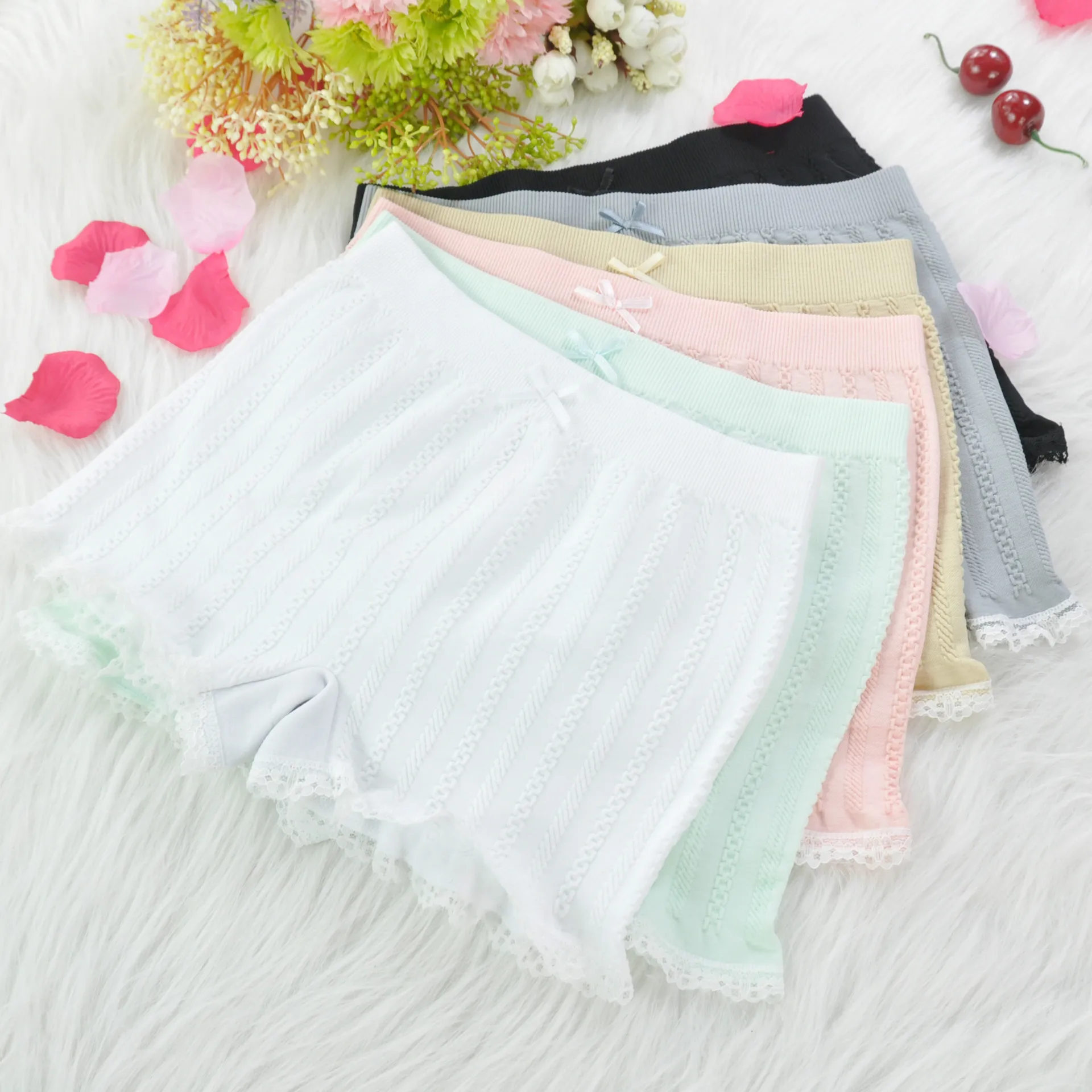 Women Safety Short Pants Sexy Lace Seamless Underwear Breathable Panties 5pc Summer Slim High Waist Boxer Solid Color