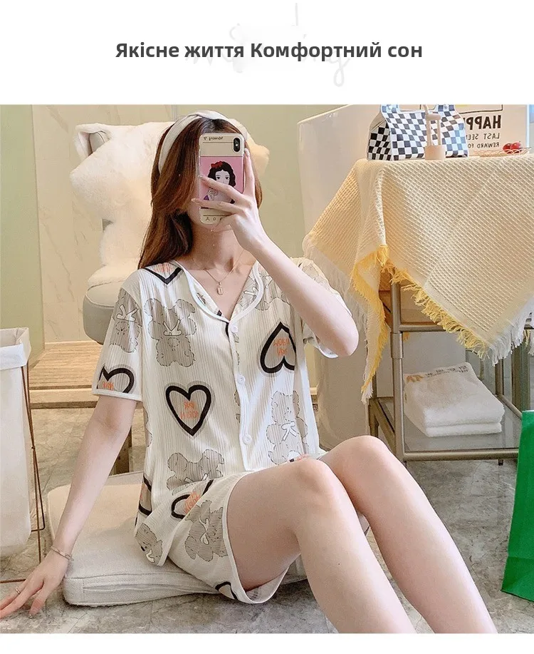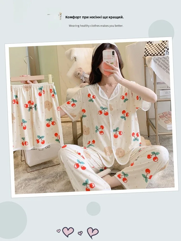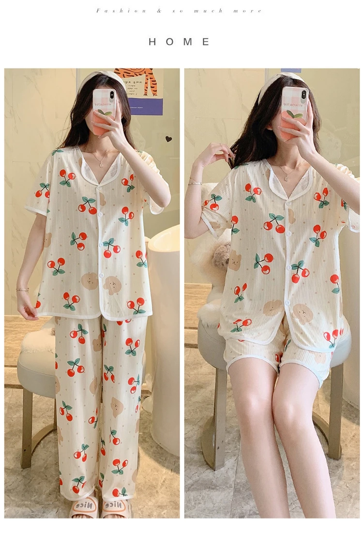 تم تصميم مجموعة ملابس النوم الصيفية هذه لتوفير الراحة بفضل مادتها القطنية الرقيقة وخفيفة الوزن، وهي مثالية لليالي الصيف الحارة.