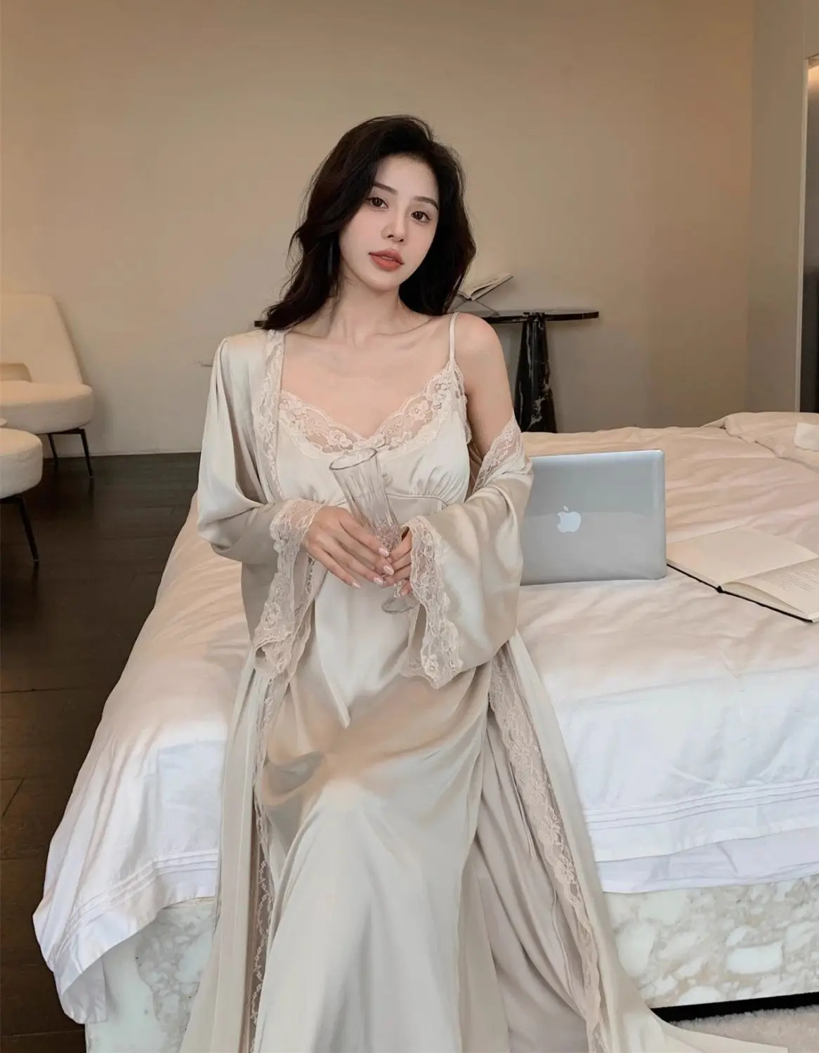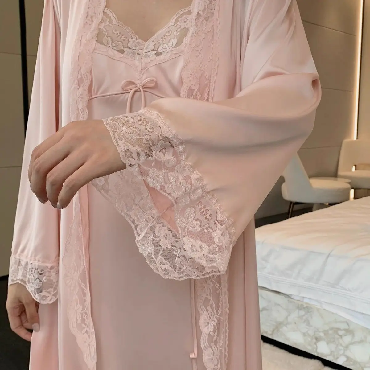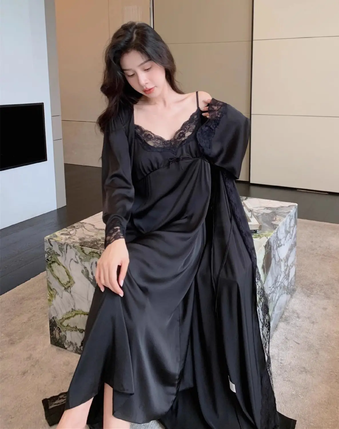 تتميز برقبة على شكل حرف V مثيرة وزخرفة من الدانتيل الرقيق، تضيف مجموعة ملابس النوم هذه لمسة من الأناقة والأنوثة إلى ملابس النوم الخاصة بك.