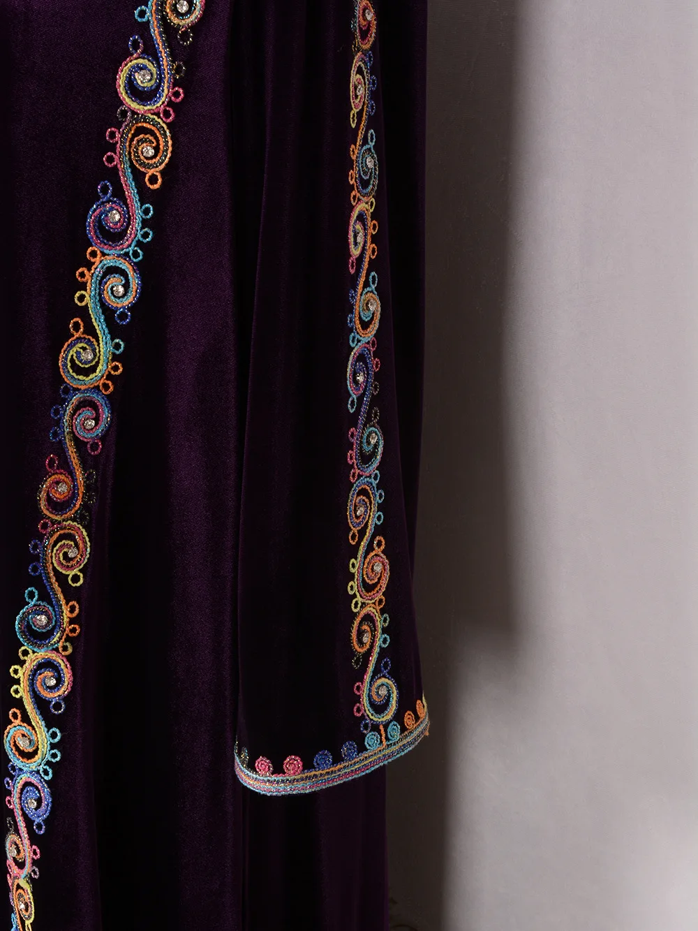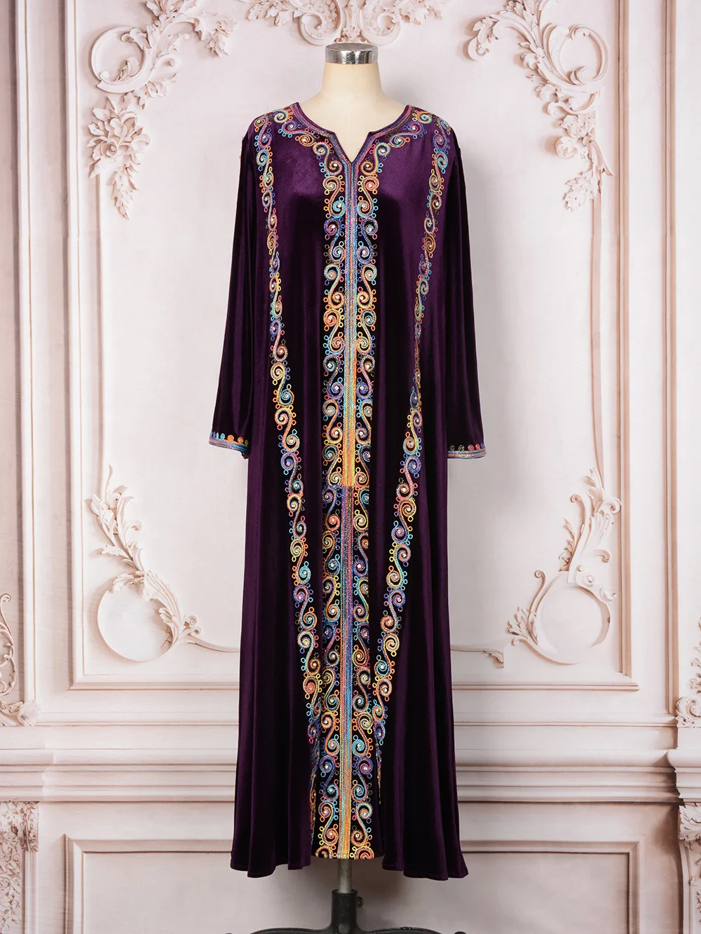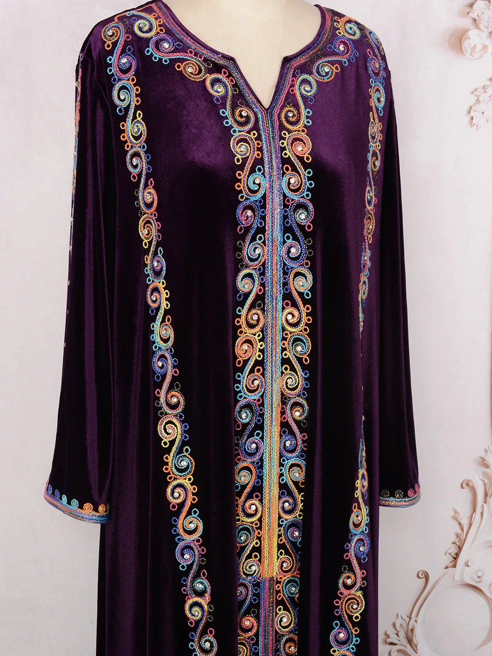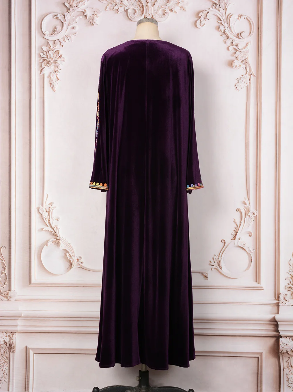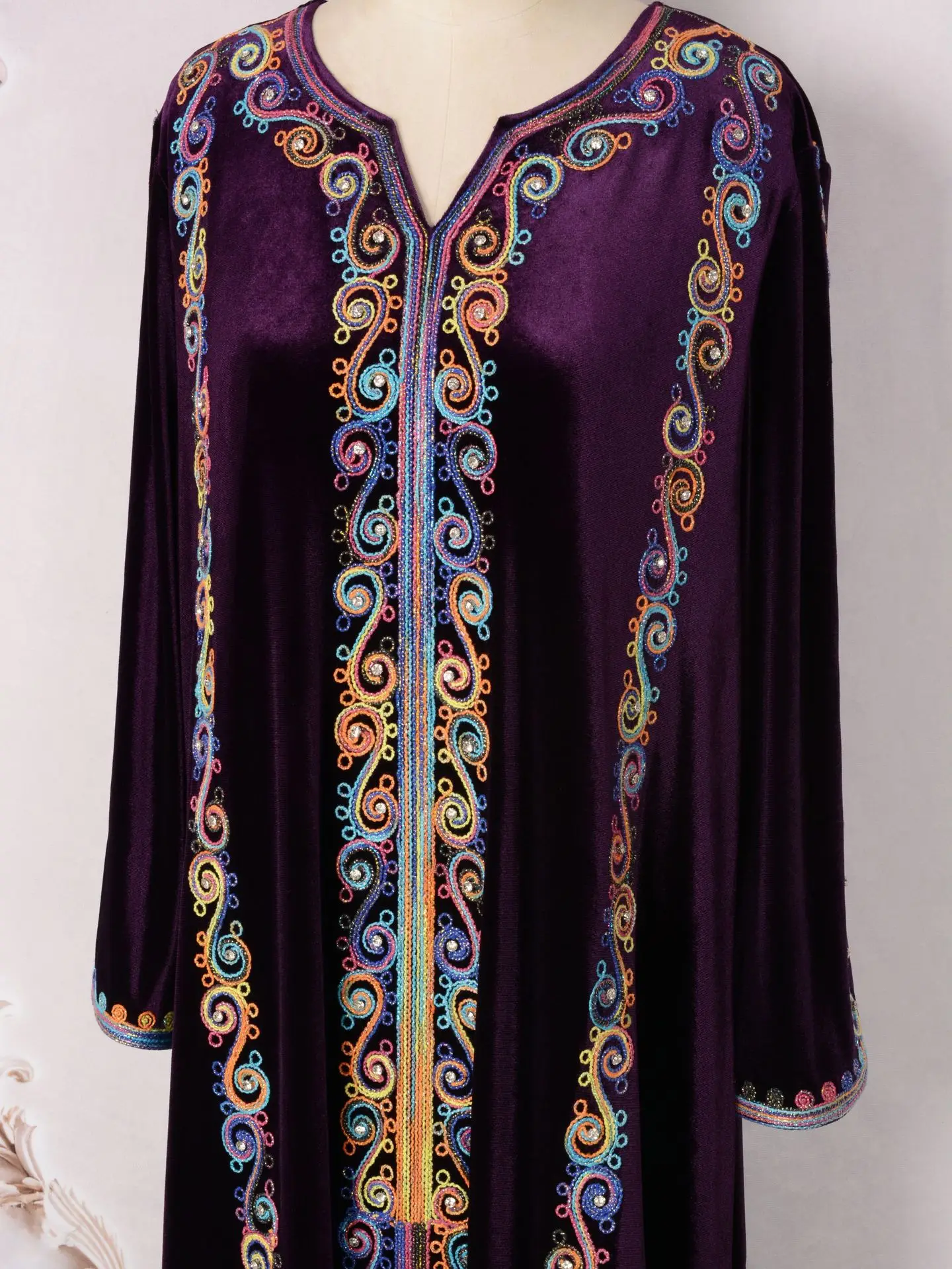 MT507 يوني موضة الصلبة فستان مسلم المرأة التطريز عادية المخملية عباية المغرب التركية رداء فام كم طويل ماكسي فيستيدوس