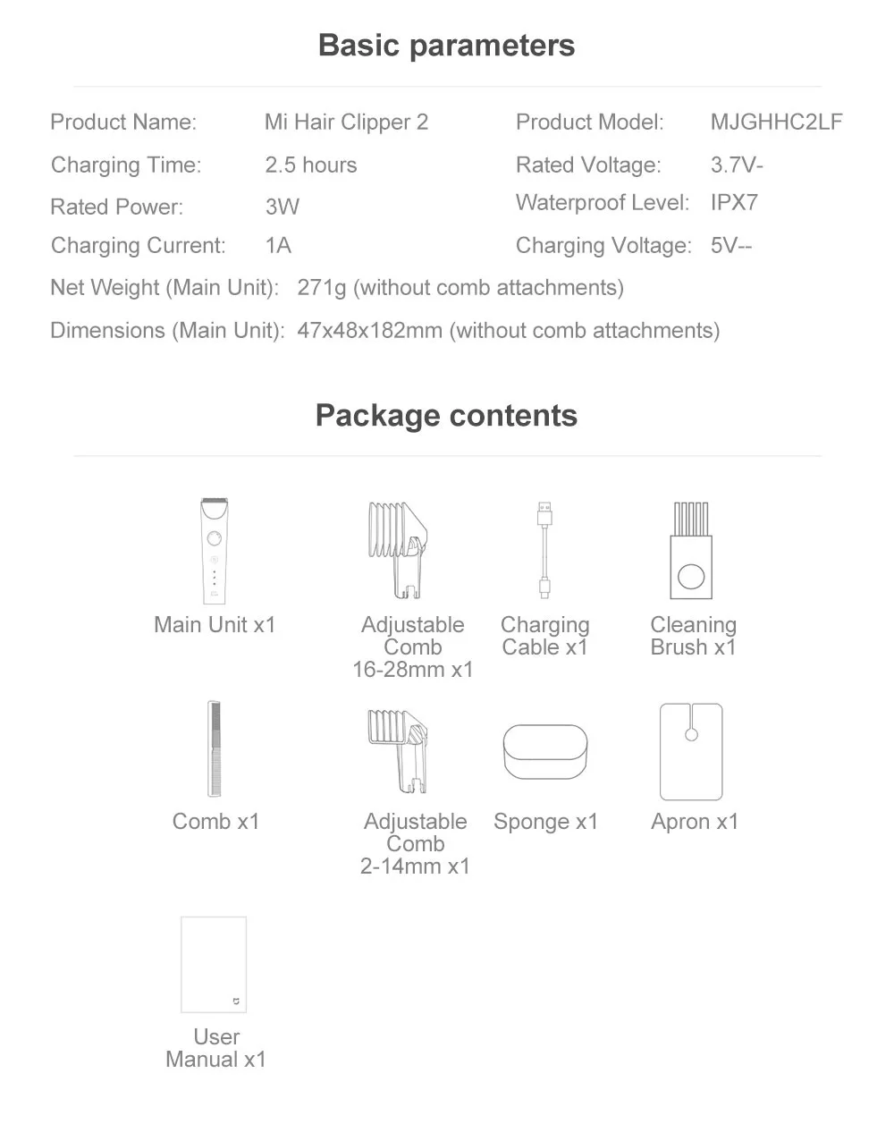 الوحدة الرئيسية X1 ، قابلة للتعديل ، X1 ، فرشاة تنظيف X1 ، مشط قابل للتعديل 2-14 X1 ، إسفنجة x1 ، مشط X1 ، مشط X1 ، UserManual X1