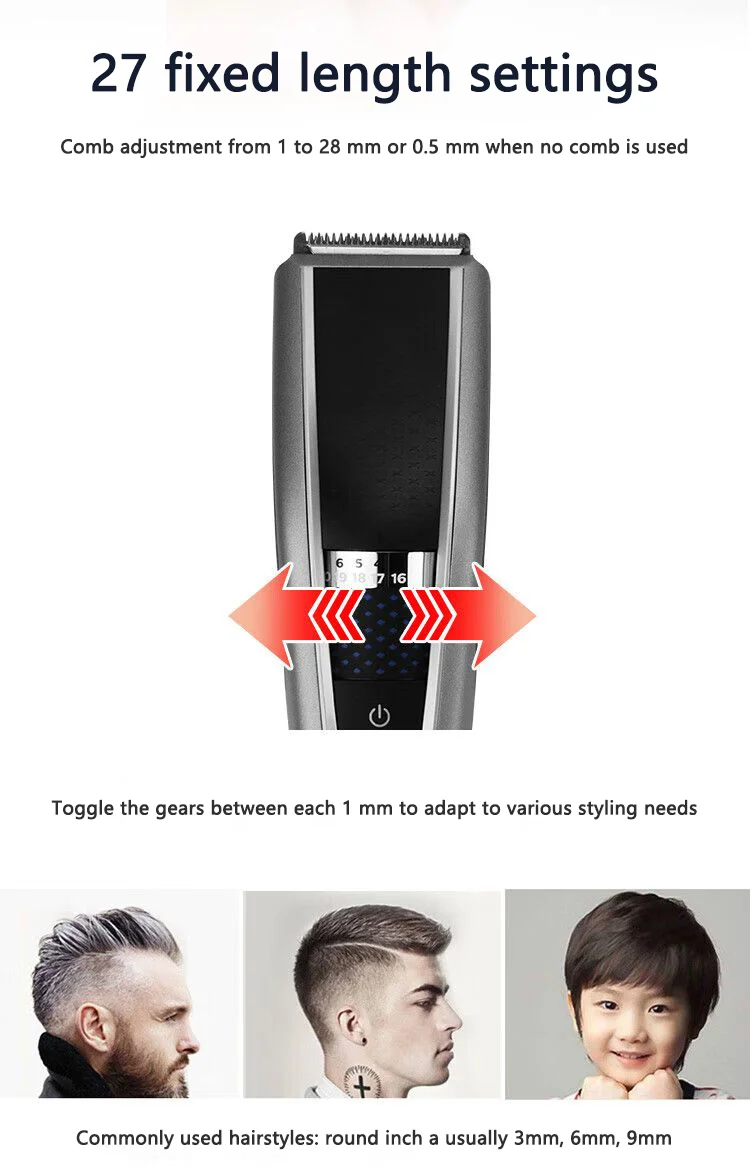 • تعديل طول سهل :توفر طريقة تدوير المقبض طريقة سهلة لضبط طول شعرك ، مما يضمن قصًا ثابتًا وموحدًا في كل مرة.
