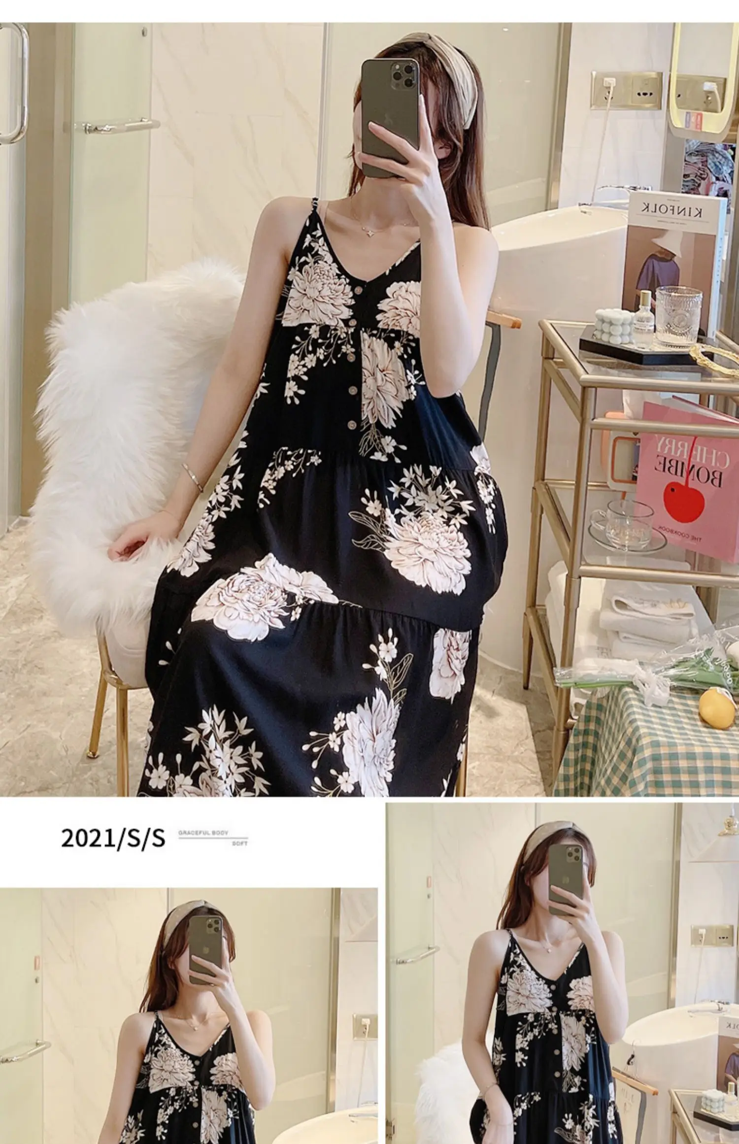 كن أول من يقيم “ملابس نوم صيفية رفيعة بدون ظهر من الحرير والقطن للنساء، ثوب نوم من القطن الاصطناعي، فستان حريري بمقاس كبير”