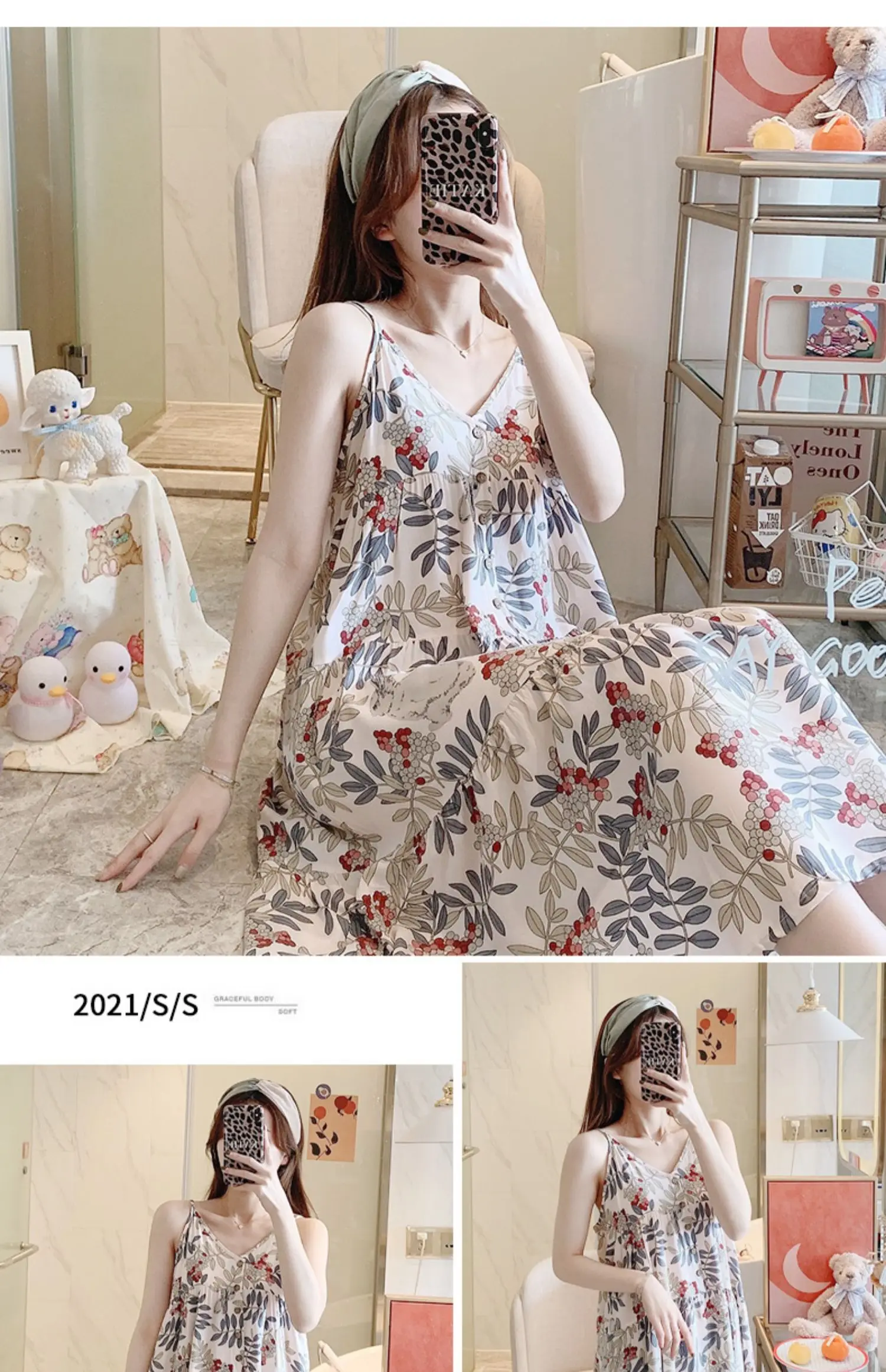 مزين بطباعة زهور جميلة، يضيف ملابس النوم هذه لمسة من الطبيعة إلى مجموعة ملابس النوم الخاصة بك.